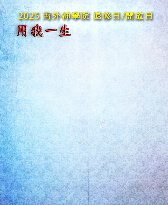 歡迎有志報讀延伸課程及尋求全時間奉獻的信徒 本院師生與你一同尋索 或是按此按钮,内含所有退修日/開放日資詢。 最後有報名表格。 點击此圖,可放大看見所有退修日/開放日資詢。 也請打印张貼或傳給弟兄姊妹。 報名 参加